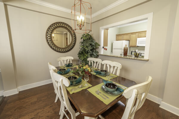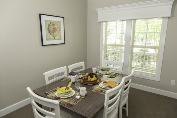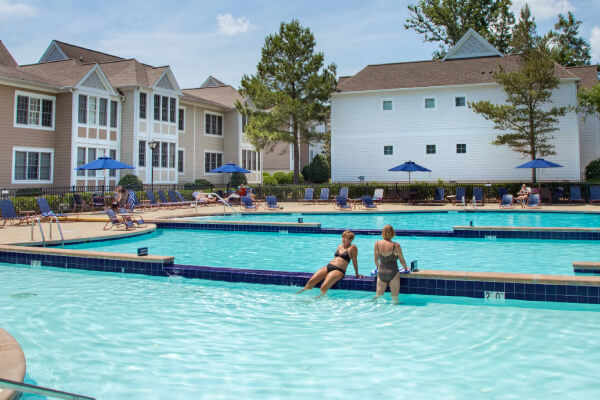 The Townes feature luxury amenities for lavish living. Each suite includes a private sitting area and lots of room to entertain. The bright sunroom, washer and dryer, fireplace, and full kitchen make it the perfect home away from home. A summertime favorite is the Townes swimming pool! **Upgrades based on availability**